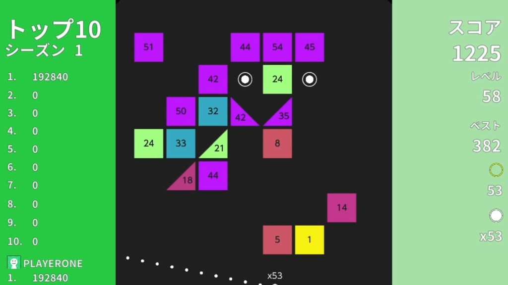 At the start of the game, you’ll have a single ball at the bottom of the screen and square blocks with numbers at the top. Swipe your finger to aim and release the ball at the desired angle to hit the squares, reducing their numbers until they disappear. You’ll also see small white circles on the screen—hit them to get more balls, yellow circles give you additional bonus scores.